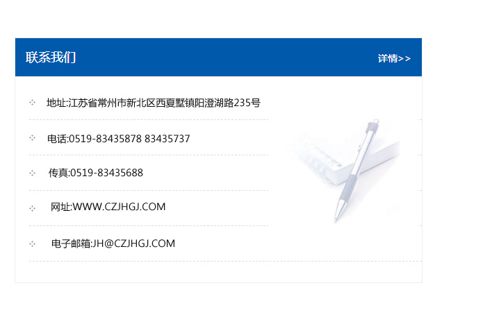 傳真:0519-83435688    郵編:213135    網址:WWW.czjhgj_com.xinjuhui365.com    電子郵箱:JH@czjhgj_com.xinjuhui365.com
